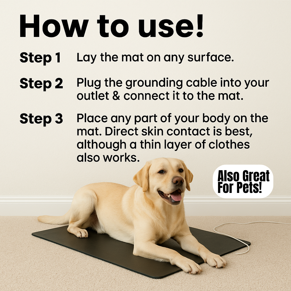 The Ground Energy™ Mat links your body to the earth’s natural electrical balance through the outlet’s earth port. As you make skin contact, excess charge is safely released—so you can relax, unwind and recover in comfort.